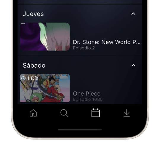 Añade animes en emisión a la lista para ver en el calendario semanal si ya se ha estrenado el episodio y reproducirlo.